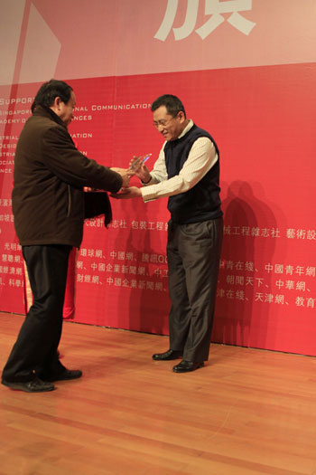 蔡军、刘国余教授为获优秀产品设计奖企业颁奖