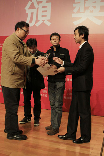 由世界华人设计学术协会主办、天津理工大学承办的“华人创新奖-2010世界华人创新设计大赛”终评答辩于2010年12月11日晚19点30分于天津理工大学新南楼C区第一、第二会议室举行,由世界华人设计学术协会新任会长、副会长、理事组成专家评审团,评审了“华人创新奖——2010世界华人创新设计大赛”入围作品,并对晋级本次大赛的前20名选手进行了作品公开答辩。答辩评审会由世界华人创新设计大赛组委会秘书长张磊主持,林衍堂教授、程建新教授分别担任各评审组组长,答辩采用公开方式现场进行,评审过程井然有序,评审标准科学严谨,评审结果客观公正。选手们经过紧张激烈的角逐,充分展示出了自己的设计实力,不少作品赢得了专家的一致好评。答辩结束后,专家团依据本次大赛的评审要求,对每份作品计算出了精确的分值并签署了评审意见,对个别有争议的作品进行集体投票,求同存异,最终产生出“金奖”、“银奖”、“铜奖”及“最佳实用功能奖”、“最佳设计表现奖”以及“可乐马家具创新特别奖”。“华人创新奖”主席、评审团专家及组委会秘书长分别在获奖证书上联合签名认证。此外,由于个别作品没有达到评审要求,最终取消了最佳创意奖。