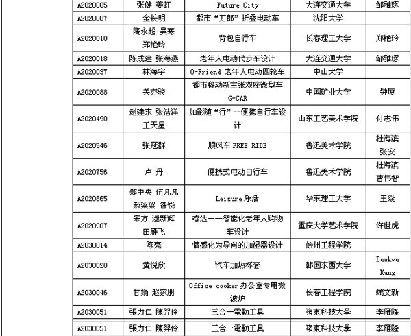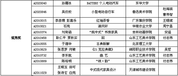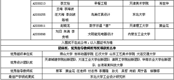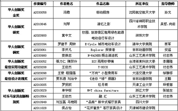 表2 “华人创新奖-2010世界华人创新设计大赛”自由组获奖名单