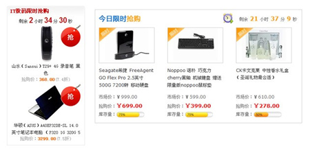 4.1 电子商务网站中,限量限时促销。如下图中的易迅网首页的截图。