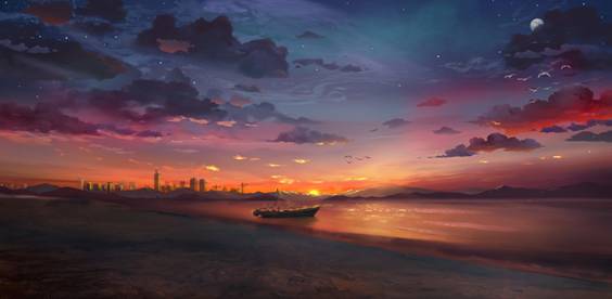 于沺:我的创作过程其实很简单,有时候也没什么定性,由于我是一个纯粹的视觉系作者,因此很多时候我的创作目的很单纯,那就是--好看。 我在着手每个场景或者每张画之前,很多时间是出去拿着相机到处拍,眼睛看着好看的,能够给予我一定震撼的就会拍下来,尽管回来不一定用,但是寻找的是当时看到那一幕,心里立刻冒出"漂亮"这个词的瞬间感觉,保持这个感觉一段时间,在坐在电脑前的时候我会有一个目标。然后我会翻看自己所拍摄过的照片,很多时候的创作是有要求的,因此我翻看也是有比较明确的目的,我会看,然后边想边把一些认为好看的素材拼凑成起来,并让他逐步的成为一个新的环境,一个新的整体。一直到这个阶段都几乎是玩着做的一个过程,但是一旦确定了一个靠谱的大氛围,我就会让自己的思路转变到另外一条路上,开始进行一个相对严谨的步骤,我会确定诸如透视,比例等一系列基础要素,保证我的画面看起来是舒服的。 随着创作数量的增加越来越意识到画面的基础要素的重要性,明艳的色彩和拉风的效果,都需要良好的构图和准确的造型作为基石。这些要素我会在线稿阶段全部解决,之后又会进入一个让自己比较放松的状态,只要你确定了白天还是黑夜,晴天还是雨雪之后,大的基调就确定了,这时候我一般就相对大胆的进行尝试,因为色彩的组合几乎是无限的,每次我都会进行一番尝试之后再通过经验回归到自己日常惯用的一些定色和着色方法上,等大概的画面氛围都已经铺开之后,我会确定几个可能会出彩的视觉重点着重进行绘制,深入细节,然后对画面深入程度根据要求和既定目标进行排序,重点深入最最重要的视觉重点尽量达到极致,然后回归整体调整画面后结束。