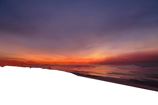 步骤六:结合天空亮部既定色调,为海面亮部进行描绘,做到两者统一,因为有强反光。