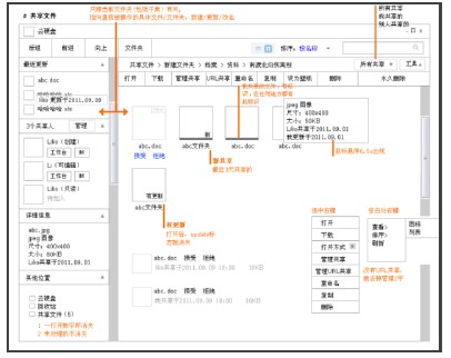 3. 云计算的特点 一切皆服务。在云计算模式下,用户不再依赖或受制于基础设施、终端,而仅仅是租用并访问云服务提供商提供的服务[4]。用户弱小的设备可以运行强大的应用,因一切繁杂的计算发生的云端,而这可以像水电一样被租赁。 永远在线。云计算的应用运行于互联网上,用户在任何时间任何地点通过网络获取服务。在线会变成一件稀疏平常的事情,越是如此,用户越多的信息会“被在线”[5]。 超大规模。云计算将计算任何分布在大量的计算机构成的资源池上执行,谷歌(Google)拥有的上百万台服务器,苹果(Apple)挥霍10亿美金建立的数据中心就是最好的例子[6]。 高可靠性。云计算具有超大的计算和存储能力,使用了数据多副本容错、计算节点重构可互换等措施来保障服务的高可靠性。用户的应用和数据分布在不同的服务器上,即使单点服务器崩溃,仍然可以通过部署新的服务器保证应用的计算的运转[6]。 4. 案例:Gleasy云操作系统设计 Gleasy云操作系统(gleasy.com)是一款基于云计算技术研发的在线操作系统,旨在帮助用户安排生活工作、管理文件数据和维护社交关系,系统提供平台能力和基础应用(如沟通、存储),同时开放给第三方开发者来为平台添加应用。产品的设计就是从典型的以新技术撞击旧需求,从而衍生新解决方案的思路展开的。以下是设计的过程实录: 4.1 我们的技术和初衷 我们看好和拥有云技术(项目研发组已经沉淀了一年),产品的发起人有一个模糊的产品共识,那就是用强大的云技术做一个跨终端综合平台,融合第三方开发者共同打造一个云生态系统,希望云计算具有的特点能恰当地运用到产品中,满足大多数人使用网络的日常需求,甚至改变人们的生活方式。接下来,就得把模糊变具体,把抽象的云技术固化成实在的产品。经过讨论,大家决定产品先以PC端版本研发上线,移动终端再后续跟上,至于为什么一开始就说要跨终端,其实大家都意识到跨终端才能发挥出云的更强大力量,解决更多因为终端切换带来使用问题,所以跨终端就成了一个愿景。 4.2 需求是什么? 前面都只是一个美好的猜测,项目还是得从分析研究开始,为后续的设计决策提供依据。 我们想满足大多数人使用网络的日常需求。那人们有什么需求是和网络有关的呢?工作、学习、生活和娱乐,都可以和网络有关。那么,现在的网络应用,能足够满足用户的需求吗?这当中用户有什么困难呢? 因为项目研发周期紧张,投入有限,我们放弃了用户研究的环节。尽管如此,我们依然在文献调研、竞品分析、利益关系人沟通之余,对我们的目标用户及其需求进行了假设。云计算的特点几乎可以满足各种不同类型的用户,既然我们做平台,用户群本来就是一个广泛的群体,几乎所有的网民都在我们最初的考虑之列,就像windows的用户一样,不分男女老少,而用户的真正类型是由平台上提供的应用类型来区分、引导的。所以我们大胆地假设我们的用户,是所有会上网的人。经过反复的论证,考虑到企业用户、白领精英对于新产品的接受能力较强,也更适用于目前的云技术,考虑到前期对于第三方应用引入的类型也偏向企业、商务解决方案的运营策略,企业白领成为我们假设的前期目标用户,后续将围绕这类人塑造场景、展开概念设计,考虑平台的基础应用形态。也就是说,工作、学习、生活和娱乐,我们暂时选择了以工作为突破口,以工作需求为导向具化一部分的平台能力。但我们知道,平台始终是要面向更广泛用户的,所以视觉表达、实际操作上的包容、去精英化依然是我们的前提。 企业用户一般都有什么需求和困难呢?这成了我们下一步需要解答的问题。 经过文献调研和自身经验(都是白领背景)总结,我们发散了各种可能的场景、需求和痛点,最终梳理了工作当中对于项目管理、文件管理、社交关系三大方面的需求,又进一步可细化为进度、资源的安排和即时沟通,文件数据的备份、分享和协作,客户、同事、伙伴关系的建立和维护的需求。这些需求都实实在在存在,而且现在的工具并不能非常理想地满足这些需求,以致于造成用户的某些困难。比如,文件的备份,公司电脑的文件和差旅中笔记本电脑或者家里电脑的文件的同步就比较麻烦,用移动存储拷贝,不仅获取麻烦而且可能会碰到版本管理的问题,一不小心以旧换新,而云存储就能更好地解决这些难题,甚至可以实现多人同时协作修改一份文件的需求。