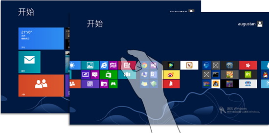 Win8非常注重触控体验,排除基本的触控操作不说,其很多关键系统操作都是依靠比较高级手势操作进行的,虽然需要一定的学习成本,但因为是用户不得学习的操作,而且习惯之后确实也会给整体体验带来更加流畅、快捷的感受,这一点笔者本人还是比较欣赏的。另外通过这样的高级手势设定,win8使得用户的操作仅通过触摸屏幕就可以完全掌控,ipad也有类似的手势操作,但那仅仅是作为辅助操作存在,相对而言,win8贯彻的更加彻底,同时也更加流畅和便捷。