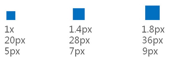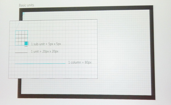 • 优秀的栅格系统 — 在推荐的1366×768分辨率上,栅格的sub-unit为5px,1 unit为20px,所有的间隔与区域划分都以此为基础。针对不同的分辨率,栅格系统也分为3种基本尺寸:1倍、1.4倍、1.8倍。这也要求在提供位图资源的时候提供3种尺寸。