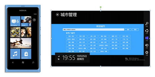 • 更多的分辨率尺寸 — 与WP7的单一尺寸不同,Win8的设备分辨率最小是10‘’(1024×768),推荐尺寸是11‘’(1366×768)及以上。微软提供了动态布局方式,可以缩小、放大或重新排列控件元素,从而适应各个设备的可用视觉空间。