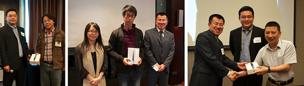Vectorworks 2013中文版发布会现场抽奬二等奬获奬者-上图,左起:上海站-上海城建市政工程集团有限公司李梦吟;北京站-上海艾博思韦宣商务咨询有限公司Steven Yu;广州站-中国建筑股份有限公司孙强