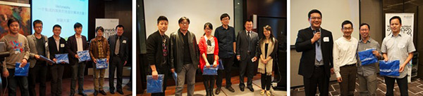 Vectorworks 2013中文版发布会现场抽奬一等奬获奬者-上图,左起:上海站-中亚园林景观发展有限公司李伟宏;北京站-规划科学设计研究院孔冉;广州站-广东工程职业技术学院戴斌成