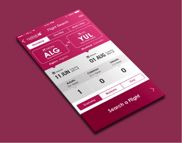 卡塔尔公司航空就是这样的设计案例,整个界面采用粉色的主色调,从标题栏到标签页,从操作按钮到提示信息,除了黑白灰之外,全部采用粉色设计,这种简介的的配色风格,反倒起到了很好的信息传达效果,也具有良好的视觉表现力,设计师在内容排版上的技巧实在是加分。