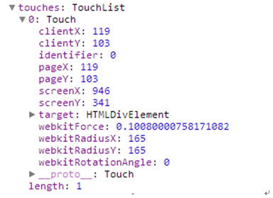 $(‘#screen’).on(‘touchstart’,function(e){ console.log(e.originalEvent); });