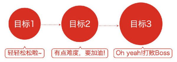 一、目标的激励 在游戏中,保持有目标,是玩家不停去玩一个游戏的核心驱动力。目标对用户的吸引力很大,达成目标会很开心,激发成就感,失败了则会不甘心,想要再次尝试。最后玩厌了、不玩了,往往是因为目标达成了,找不到新目标了,也就找不到再玩下去的理由了。从各种游戏中我们都可以发现,目标往往是渐进的。首先有一个用户可以轻易达到的目标,让用户产生一些成就感,是激发起继续玩下去的动力,然后会有一个有点难度,多次尝试才能达到的目标,最后有一个终极的大目标,往往是通关打boss什么的,达成目标后会非常有成就感。这些渐进的目标,就是黏住用户的吸引力。
