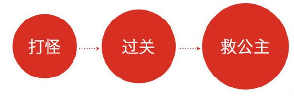 渐进的目标 超级玛丽这个游戏很多人都玩过,它最简单的目标就是打怪物,不要被怪物碰到,然后是过关、达到每一关的城堡、打过每一关的火龙,最后一个终极的目标,就是通关以后救公主。这个目标是单线程的,非常简单明确,但一旦通关就会失去动力。很多很多游戏,我们刚开始玩得时候非常有兴趣,但是一旦通关,就再也不会玩了。