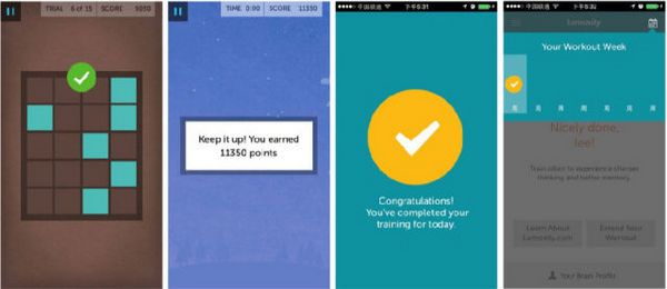网易彩票中奖提示 人们在表达之后,总是希望得到反馈和认可,积极的反馈可以增强用户的信心,提升用户体验的愉悦感,我们可以适当夸大这种积极的反馈。Lumosity是一款训练用户记忆力、注意力、应变力等大脑核心能力的移动应用。通过鼓励用户坚持每天完成一系列益智训练的小游戏,帮助用户提升大脑的能力。为了使用户可以增强信心,坚持每天锻炼,Lumosity在每一个环节都给予用户积极的反馈。在完成游戏的每一个小关卡时,闪动出的绿色对勾告诉你离成功又近了一步;完成一个游戏时,会有对话框弹出“你太棒了”或是“继续加油”等鼓励的话语;当用户完成一天的任务时,Lumosity用一个大大的对勾符号祝贺用户完成了训练。这一系列的积极反馈,都让用户感到信心倍增,加快了他们完成任务的速度。
