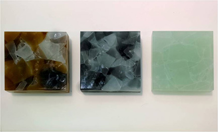 在创新材料中,环保与装饰性往往并不冲突,而是相辅相成。这样的材料让消费者也能直观地从产品外观感受到其环保性能和附加值。上图为名为晶创的材料,成分为99%的融合回收玻璃,不含粘合剂、树脂和化学剂。其特性为可适应各种天气,100%无孔,耐摩擦且不褪色。