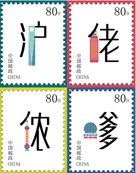 创作理念:作品以邮票形式呈现,邮票中文分别为沪、佬、侬、嗲,与上海著名建筑物形象相结合,充分体现出上海独特的文化底蕴。