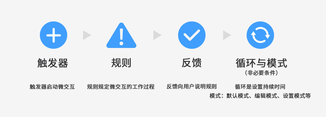 高效而有趣的微交互,涉及触发器、规则、反馈、循环和模式:触发器启动微交互、规则规定微交互的工作过程、反馈向用户说明规则、循环与模式是影响微交互的元规则。