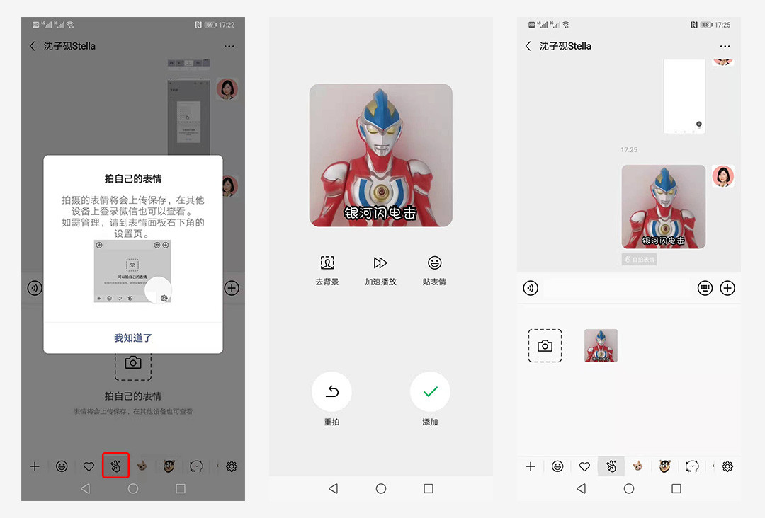 我司测试妹子推荐,微信表情包制作流程特别简单,点击【开始录制表情】【添加文字】,即可完成表情包制作。个性化定制用户的专属表情包,用户玩起来都感觉不到时间的流逝,有一款自己的表情,或是自己家人、宝宝的表情,真是一件好玩的事情,将这些有趣的表情发给亲戚朋友时,又可以拉近双方的距离。
