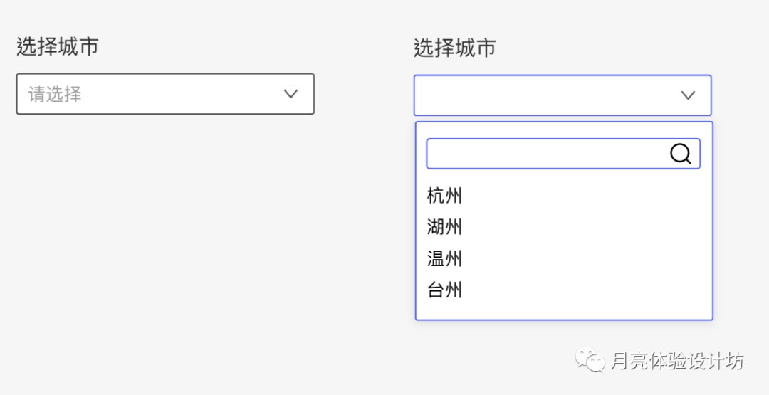 当然我们也可以在下拉列表当中结合搜索组件,帮用户在下拉列表中完成搜索任务。这种设计策略就比较老派了,好处是平铺直叙,坏处是没有啥新意,不够优雅。