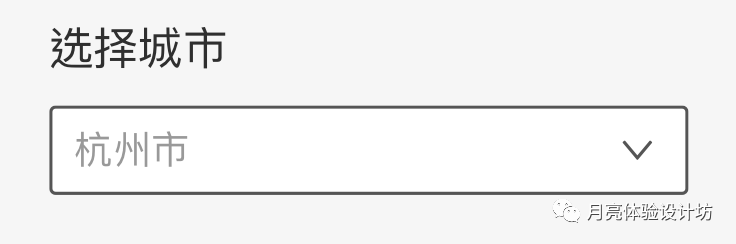 标准下拉菜单是针对我们所理解的“下拉”这个动词,在激活状态,当你点击文本输入栏的地方时,它会打开一个菜单。这里值得注意的是因为受到下拉菜单高度的限制以及用户操作效率,菜单项不宜过多也不介意太少,有研究发现当有超过 10 个或少于 5 个选项时,尽量避免下拉。