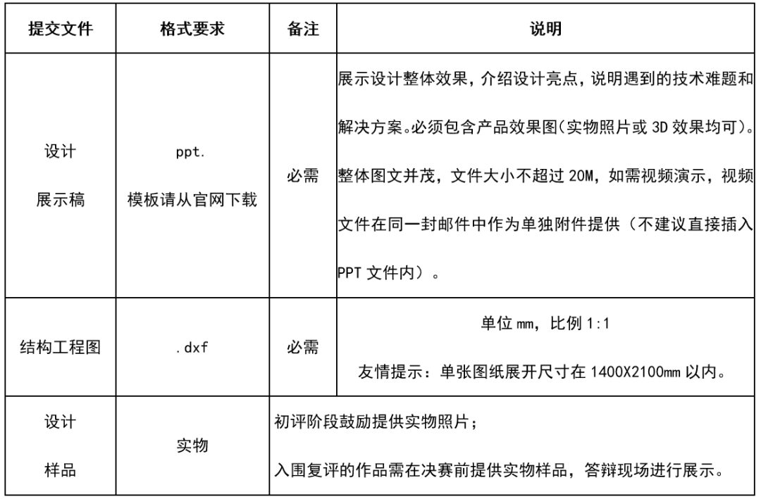 决赛文件提交(2026年5月中旬,具体日期另行通知):所有入围选手必须按时提交最终作品,此时需要提供电子版文件+实物样品,样品也可由选手自行携带至决赛会场,逾期提交电子版文件的视为主动放弃决赛。