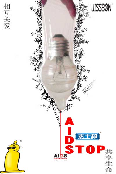 白黑红给人一种警示作用:关爱自己,保护他人,防治艾滋病,你我同参